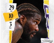 他30分钟,19投14中,罚球2投1中,得到29分10篮板2助攻3封盖。别忘了,他早早就遭遇到了五次犯规,最终造成他的上场时间有些下滑。即便是这样,艾顿还是可以在末节上场之后主导攻守,凭借自己的发挥帮助球队稳住内线,这是湖人拿下胜利的关键。