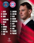 拜仁将在本轮欧冠迎战巴黎,球队也公布了本场大名单,具体如下: