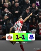 英超第10轮战罢,桑德兰主场1-1战平埃弗顿,排名英超第四。